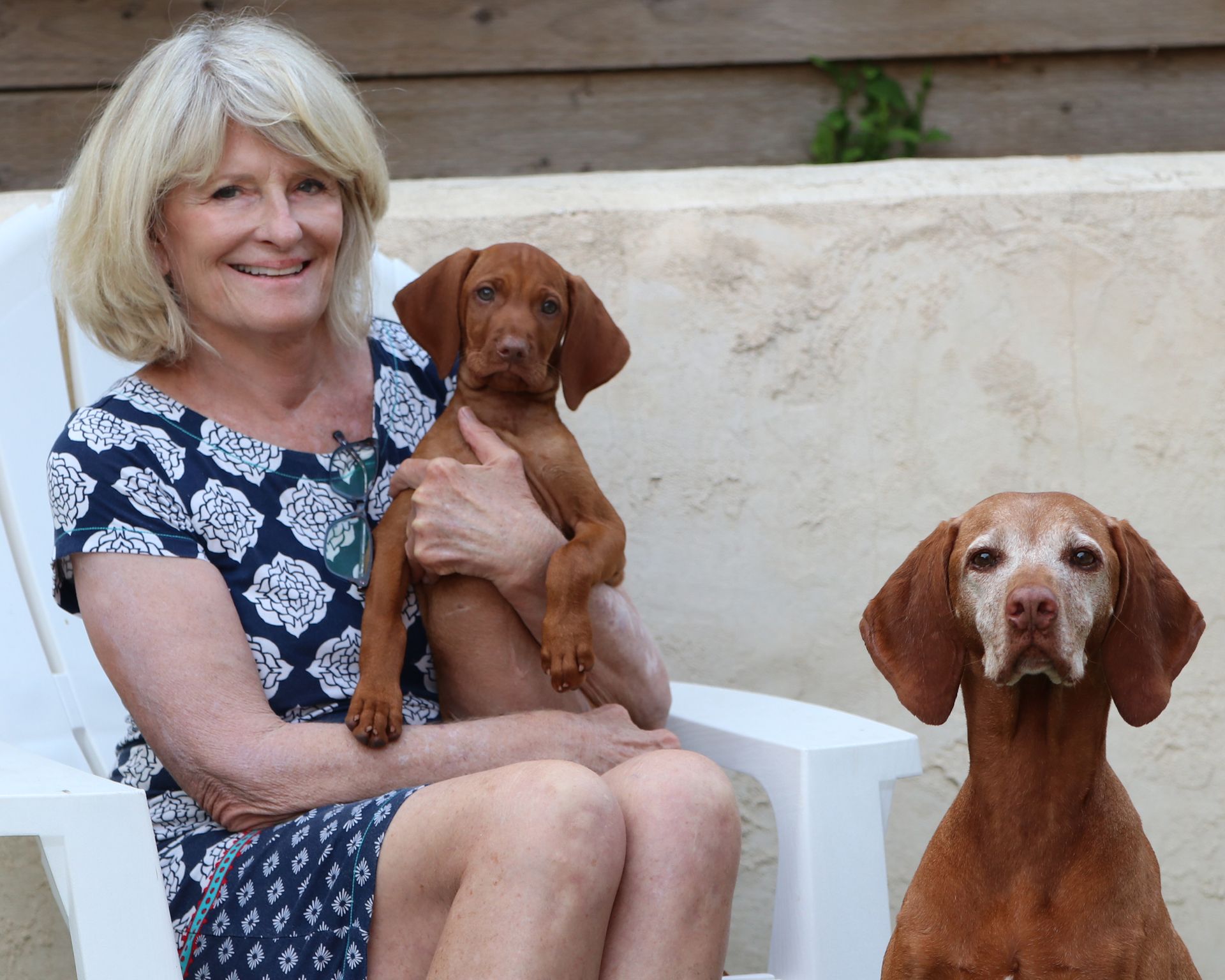 Nina lives with her grandmother, Lyra, in the San Diego area with Denise and her wonderful Vizsla-loving family.