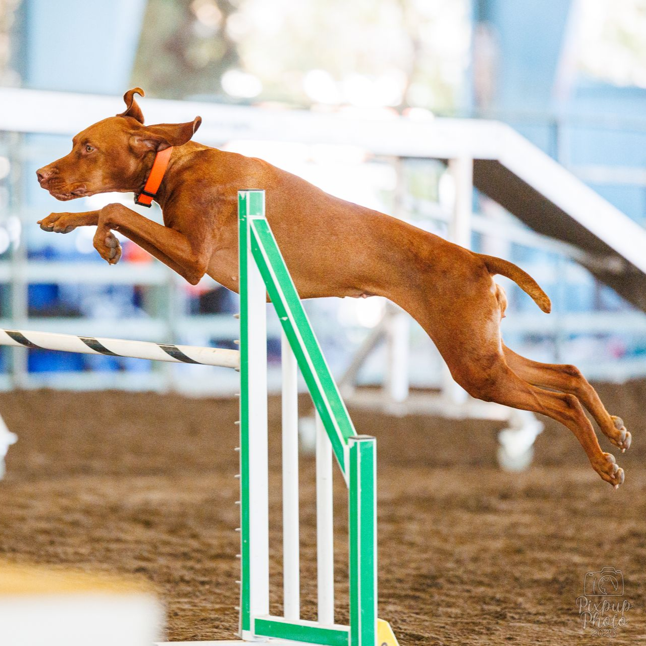 Violet embodies a wonderful "do-it-all" attitude and loves competing in a variety of events! She completed her Fast CAT (DCAT) title with ease and is now taking agility classes. She was owner-handled and trained to her Junior Hunter (JH) title and, as of late 2024, has begun working toward becoming a finished gun dog.